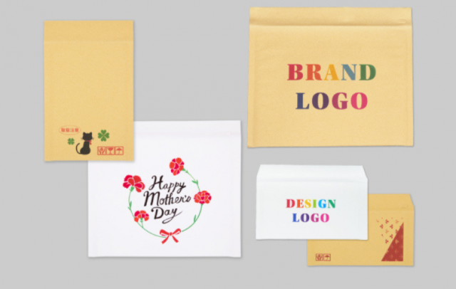 コンポスのオンデマンド印刷は幅広い商品に対応しており、クッション封筒や宅配袋などへ自社のパッケージデザインを手軽に印刷できます。