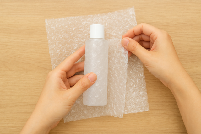 複数の化粧品を送る場合は、この段階で1つずつ個別に包んでおくと、商品同士がぶつかって破損するリスクを減らせます。