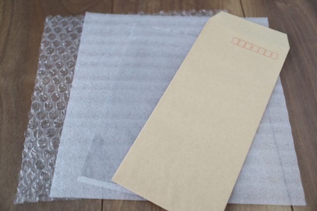 | 耐水ビニールクッション封筒 | ビニール素材で耐水性が高く、破れにくい。 内側にエアクッションが付いているため、緩衝材を別途用意する必要がない。 |